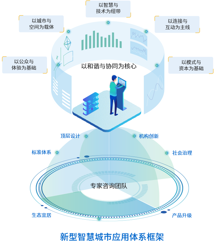 海迈科技的智慧城市专家咨询团队,提供智慧城市顶层设计和标准体系、数据治理等咨询服务,以智慧建筑为基础,将城市宏观时空与建筑微观时空相结合,围绕“互联互通、协同共享、资源融合、机制创新”的智慧城市基础支撑设计,建设“智能基础设施、精准社会治理、生态宜居城市、产业发展升级”相互协调的新型智慧城市应用体系框架,以解决方案的实施,提升城市的和谐、协同与可持续发展。
